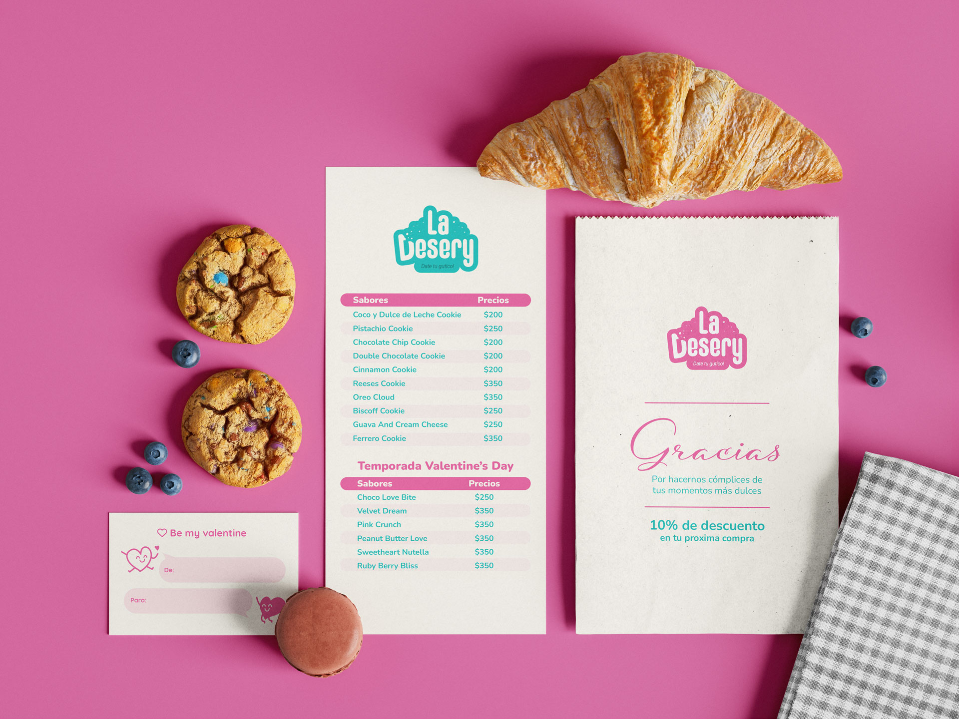 La Desery, una tienda especializada en galletas decoradas, buscaba una identidad visual coherente para sus empaques, redes sociales y piezas promocionales. Aunque ya contaban con un logotipo, necesitaban desarrollar una línea gráfica que reflejara la esencia dulce y moderna de su marca sin rediseñar desde cero.